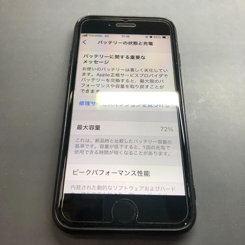 iPhone 8「電池の減りがとても早く、最大容量が72%まで低下している」
