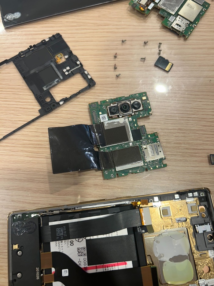 Arrows NX9は背面側から開くタイプのため、繊細なケーブルが多く慎重な作業が必要です。