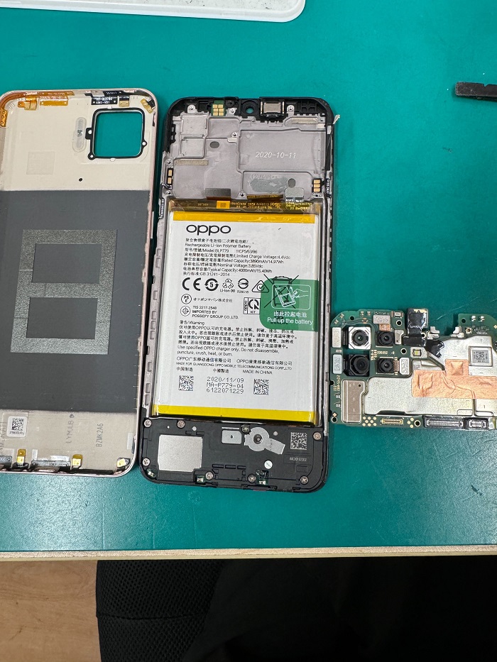 OPPOシリーズは背面から開けるモデルが多く、内部ケーブルも繊細。