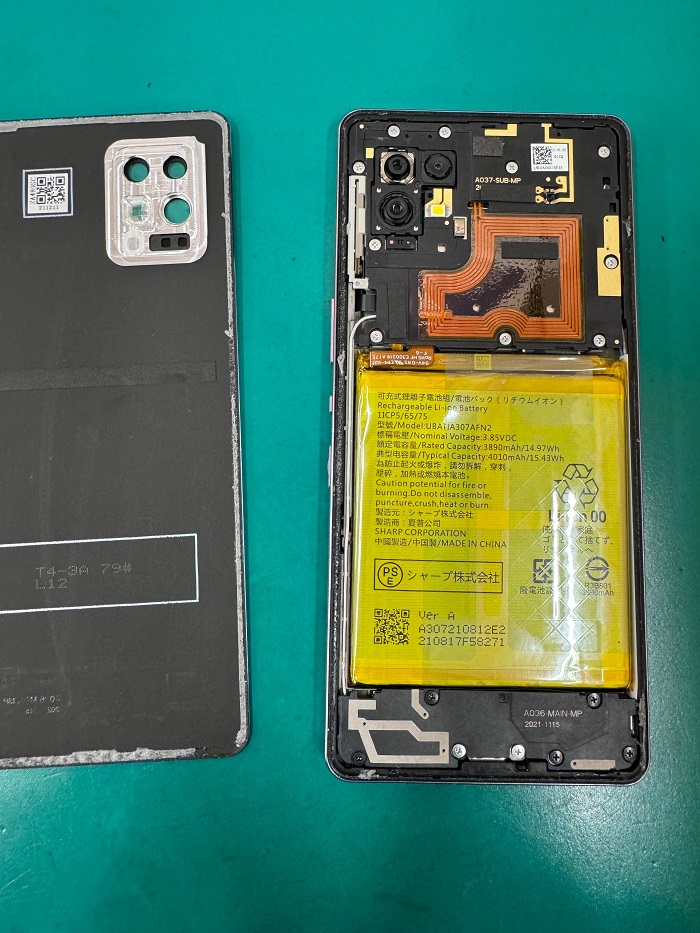 見るとバッテリー膨張の影響で背面が浮いてきてしまっている状態でした💧