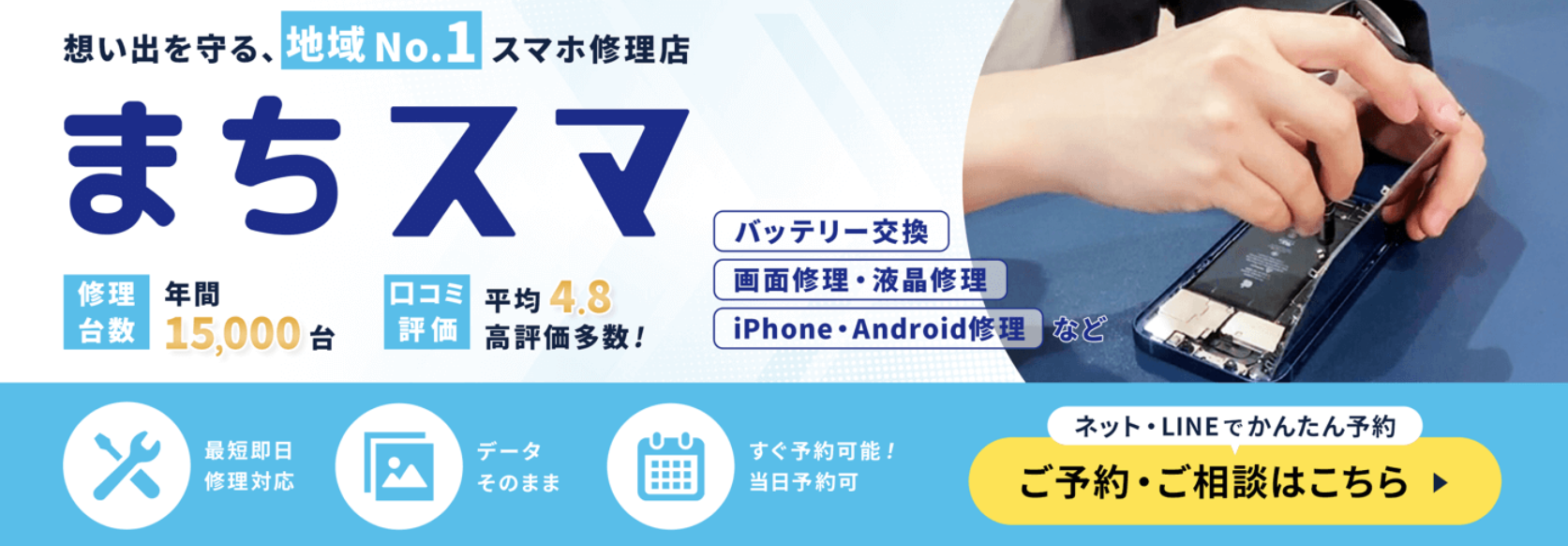 当店は、Apple Store正規店やキャリアショップ店ではなく、当店「まちスマ」にご相談ください。
