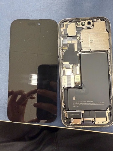 iPhoneは画面がネジや粘着テープなどでとまっていますのでこれらを外していきます