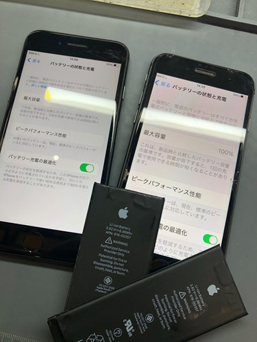 iPhone8 × 2台のバッテリー交換(作業時間40分) の修理事例をご紹介します。