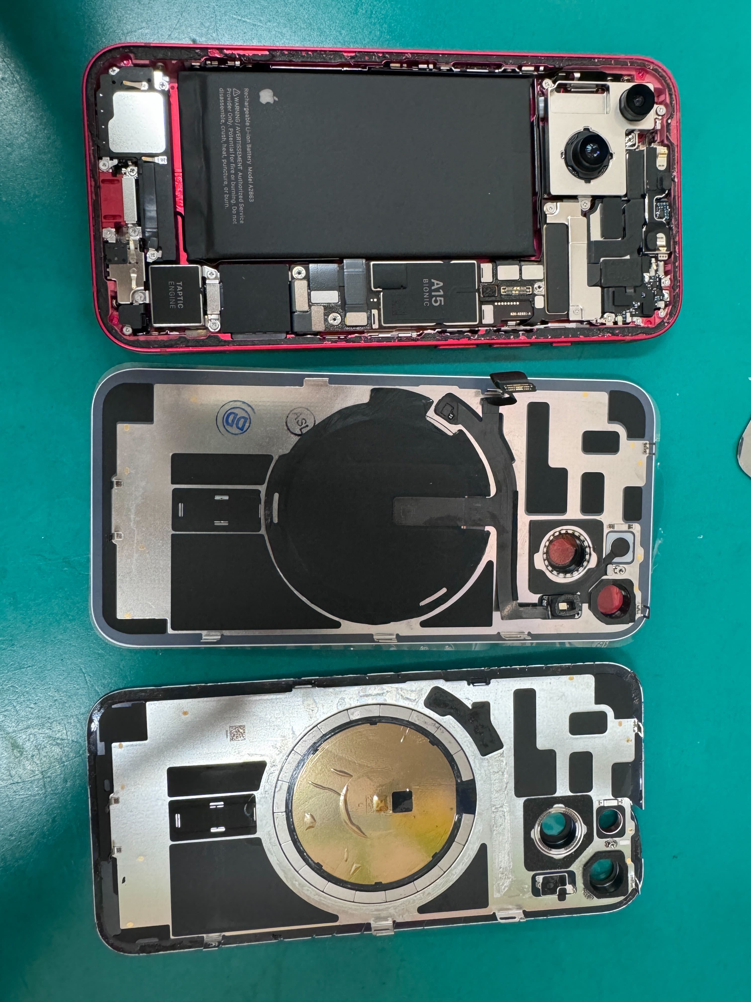iPhone 14 の背面修理はフレームと一体型ではないので移植する部品も少ないです!