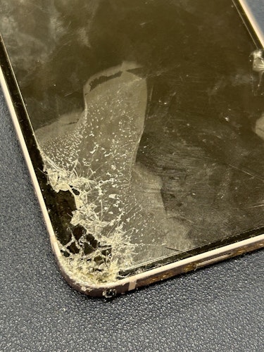 見せていただくと画面はバリバリ!ガラスフィルムも貼られていましたがもろとも粉々。