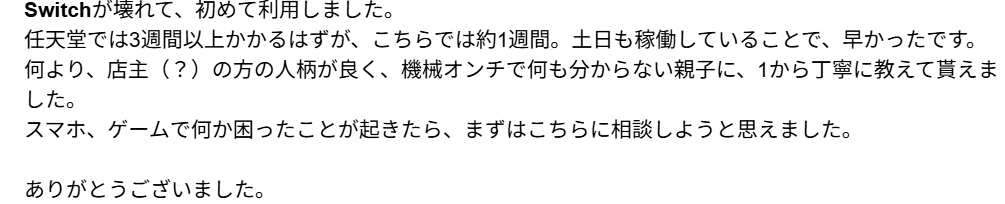 有機switchの修理・・・「時間は?」「料金は?」「データは消える?」