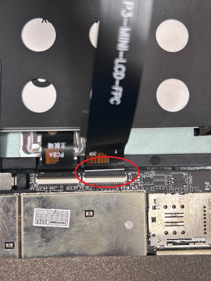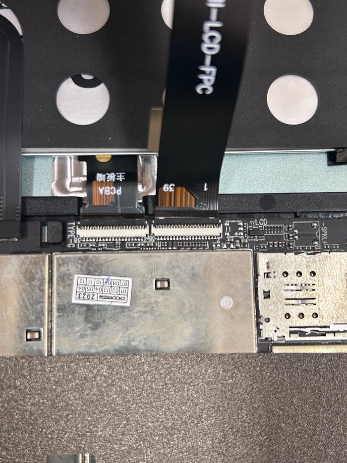 画面と基板をつなぐ 配線(フレキシブルケーブル) を確認すると、