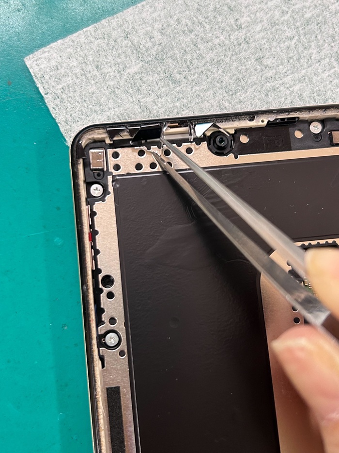 新しい画面を取り付けるには綺麗に除去しないといけないのでピンセット等使ってしっかり外して行きます!