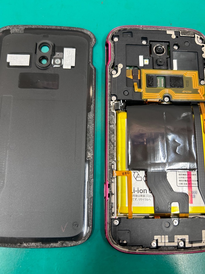 【春日井市】らくらくスマートフォン F-52Bが電源入らない症状でご来店|脱着作業で無事復旧しました!