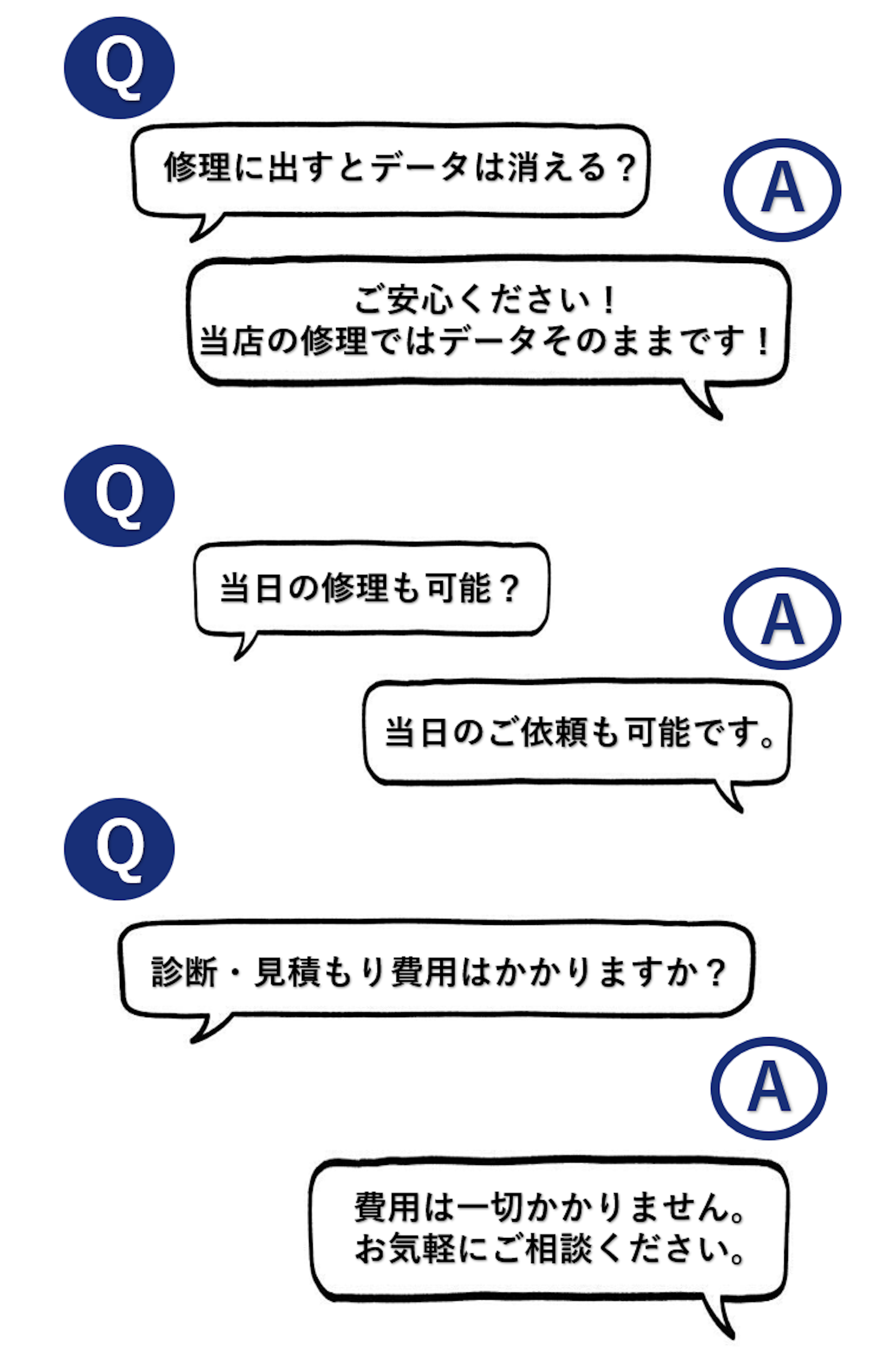 「修理に出すのが不安」「料金は?」「データは消える?」