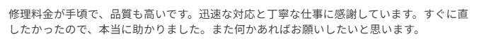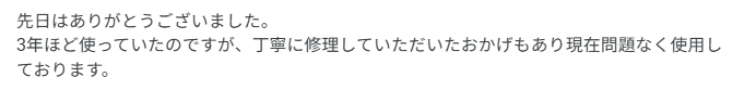 - お客様の声: 「どうしようか困っていましたが問題なく直って助かりました!」