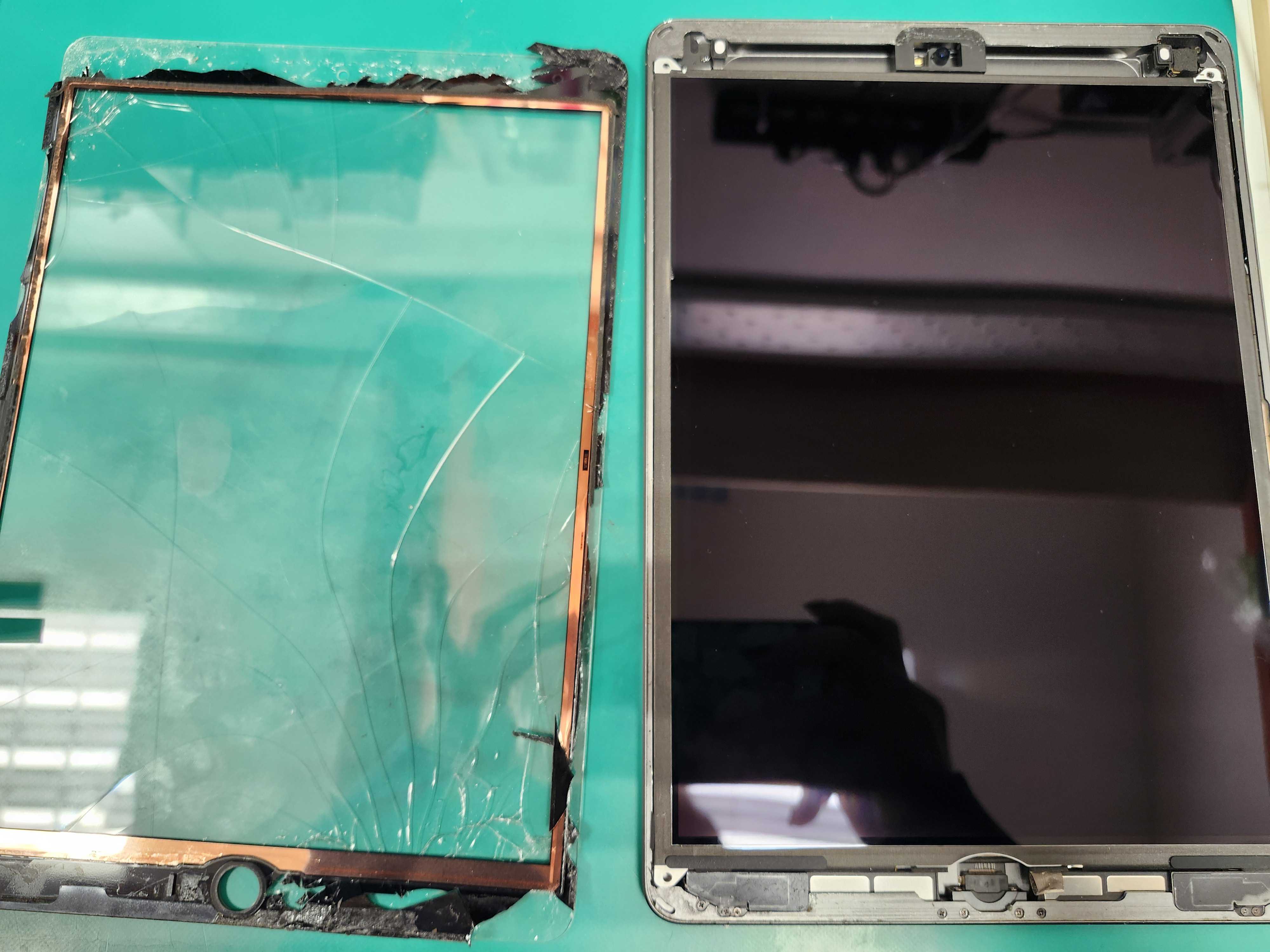 iPadは ガラスと液晶が分離構造 のため、ガラスが割れても表示されることがあります。
