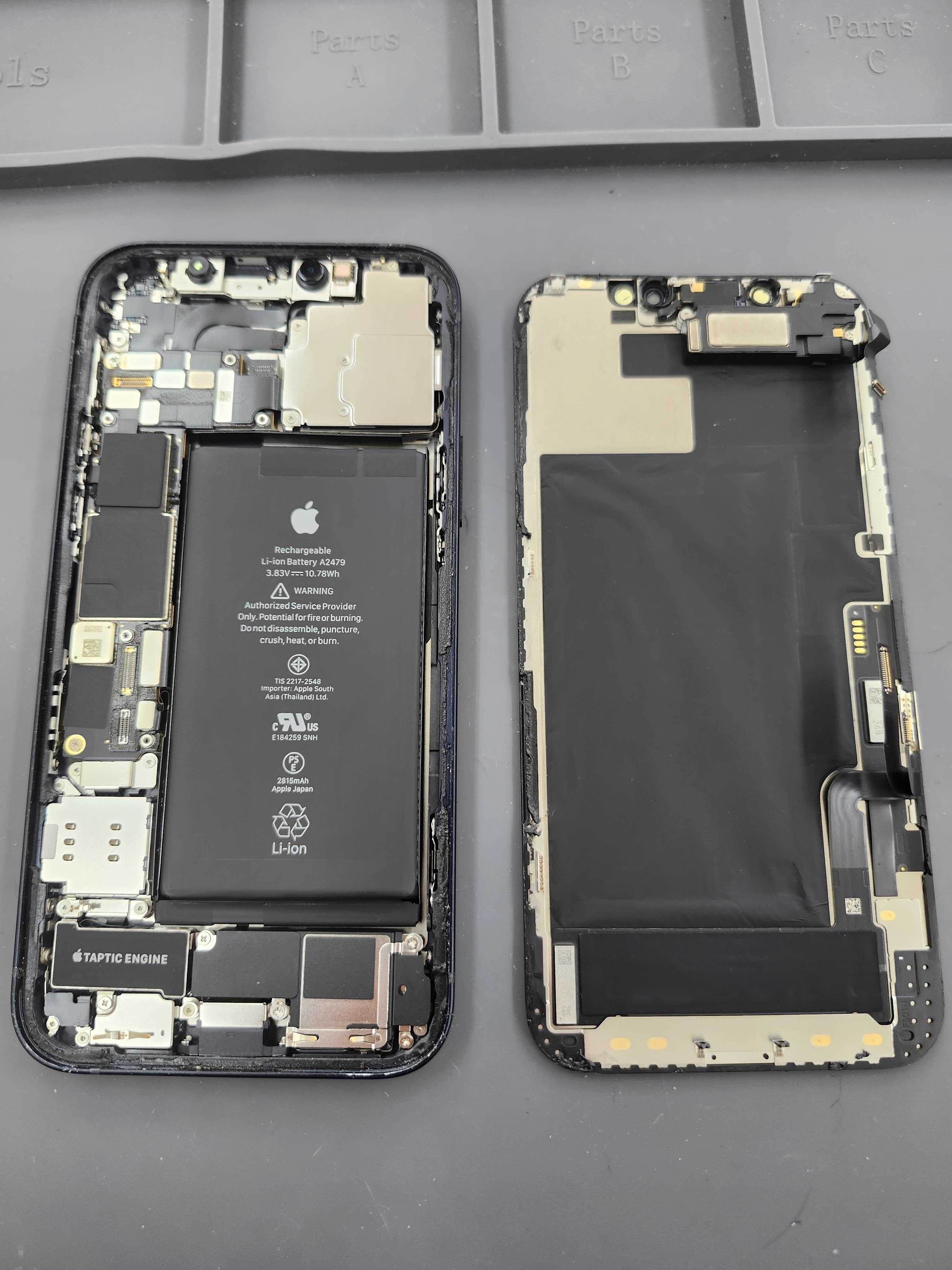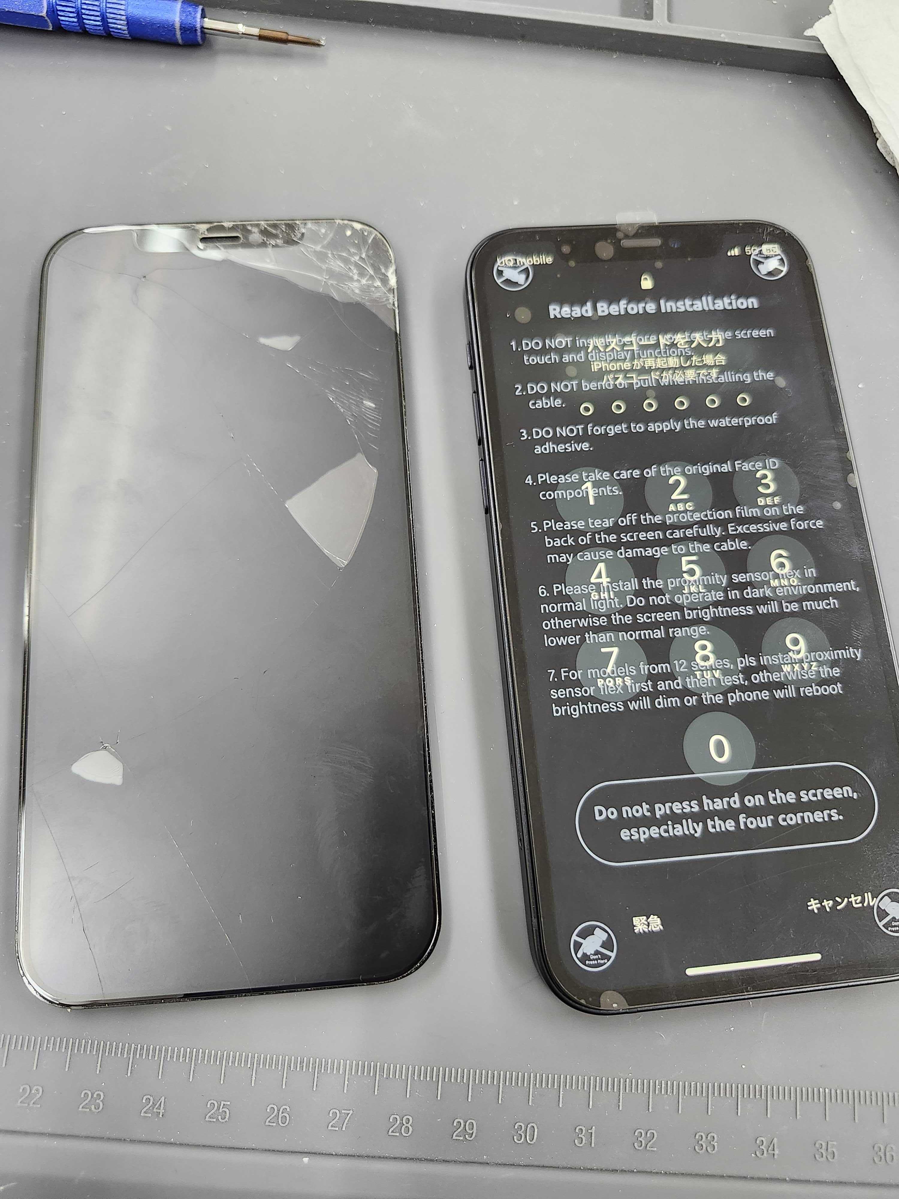 画面交換時にはFace IDや近接センサーの移植作業を慎重に行います。