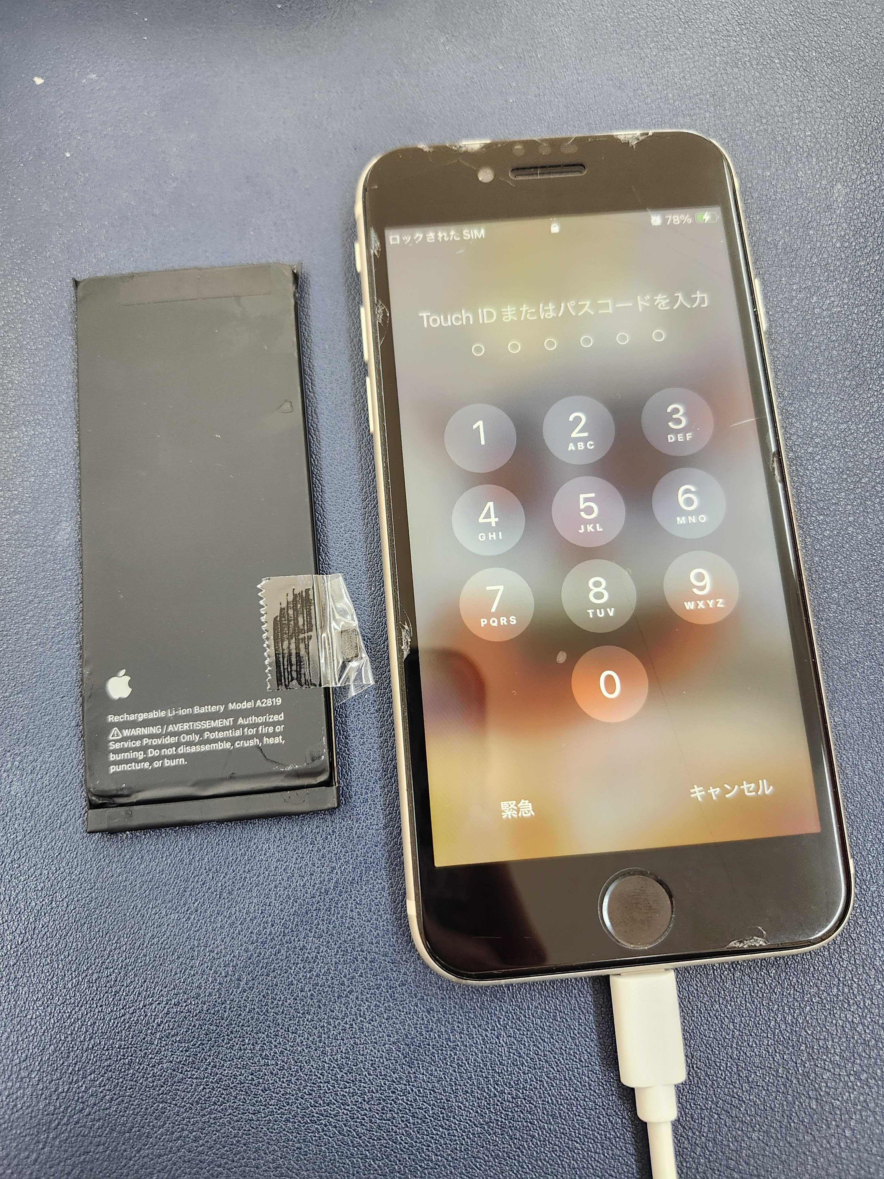 とのご相談で、iPhone SE(第3世代)のバッテリー交換をご依頼いただきました。