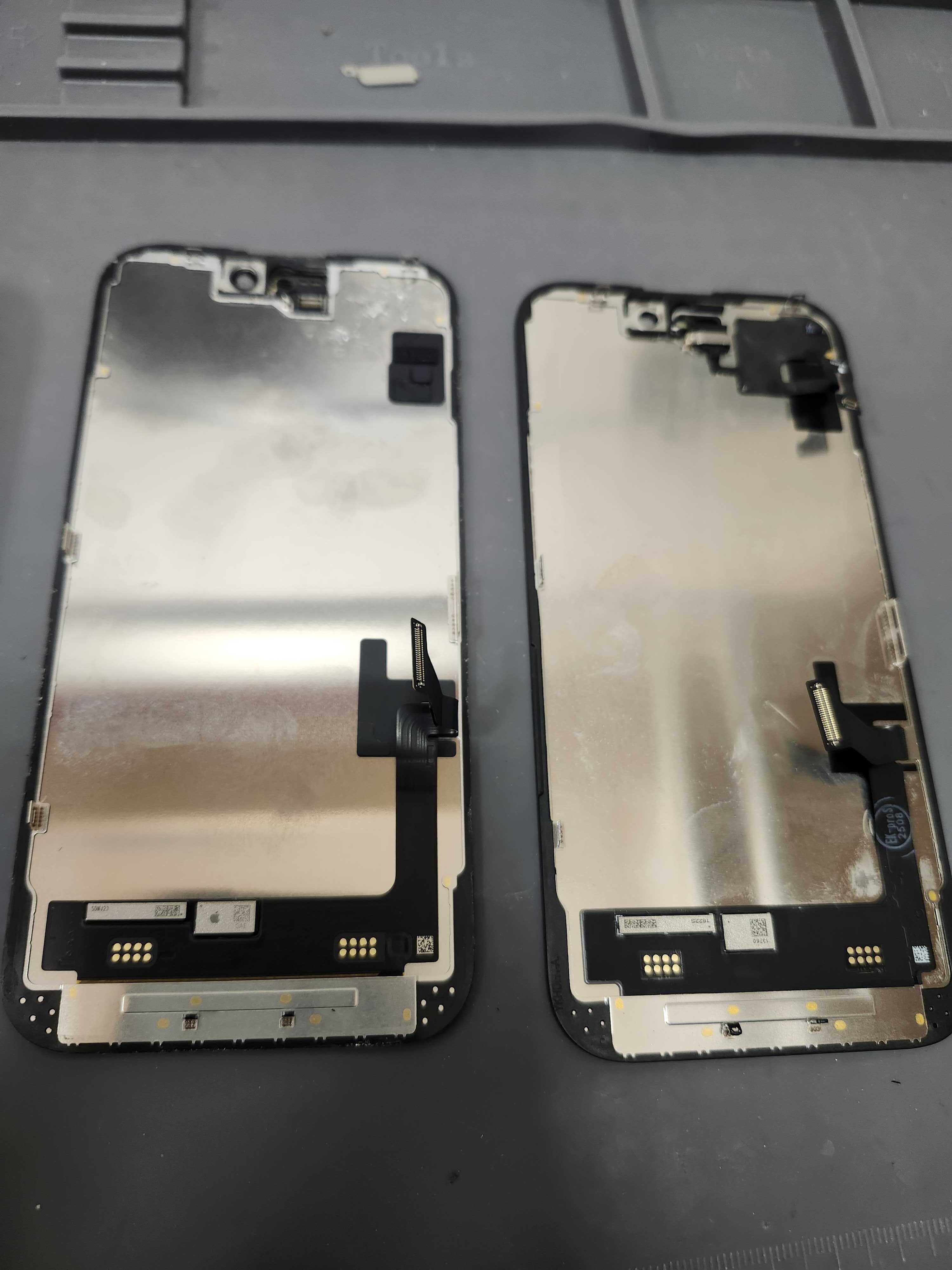 こちらは取り外した画面(左)と、新しい交換パネル(右)の比較写真イメージです。