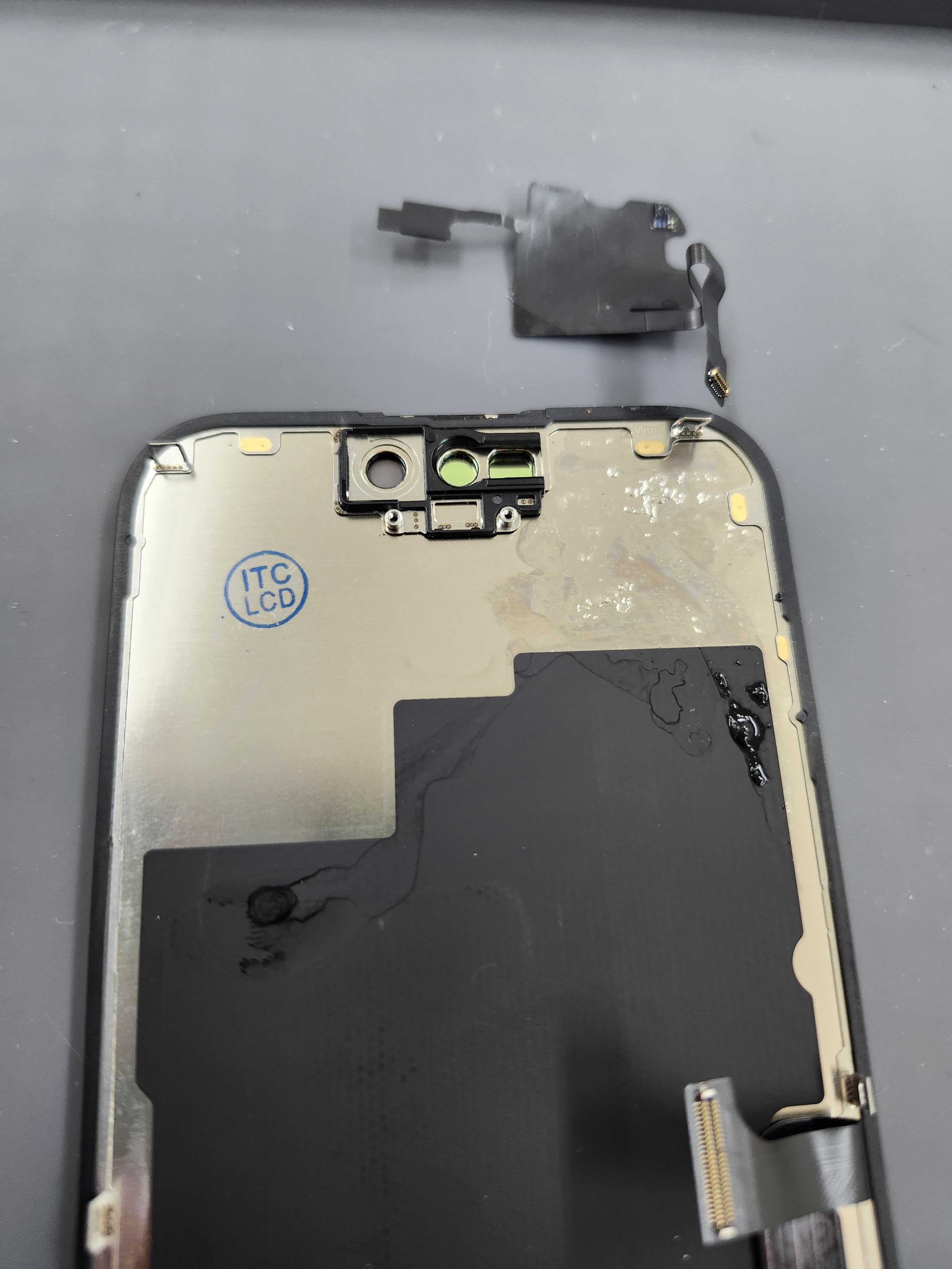 センサー類やスピーカー部分を新しい画面へ移植します。