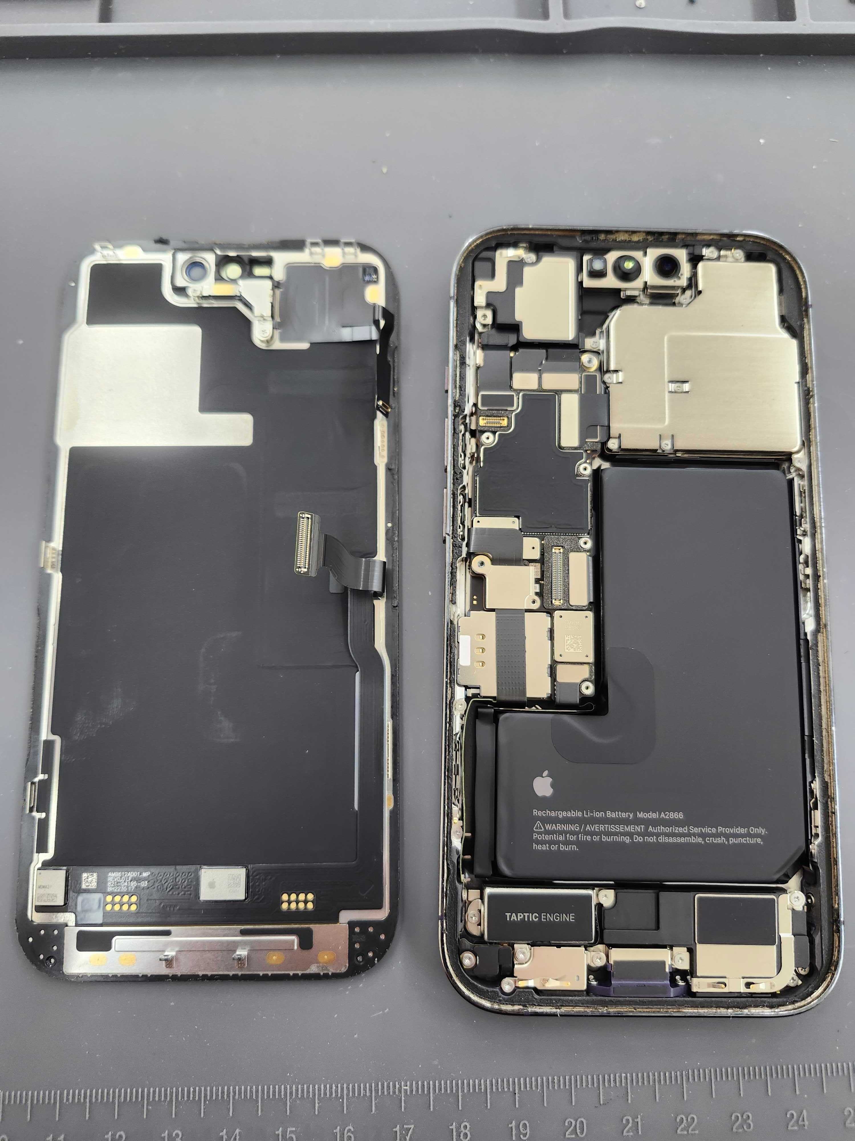 iPhone14 Proは防水シールが強固なため、画面破損に注意しながら開けていきます。