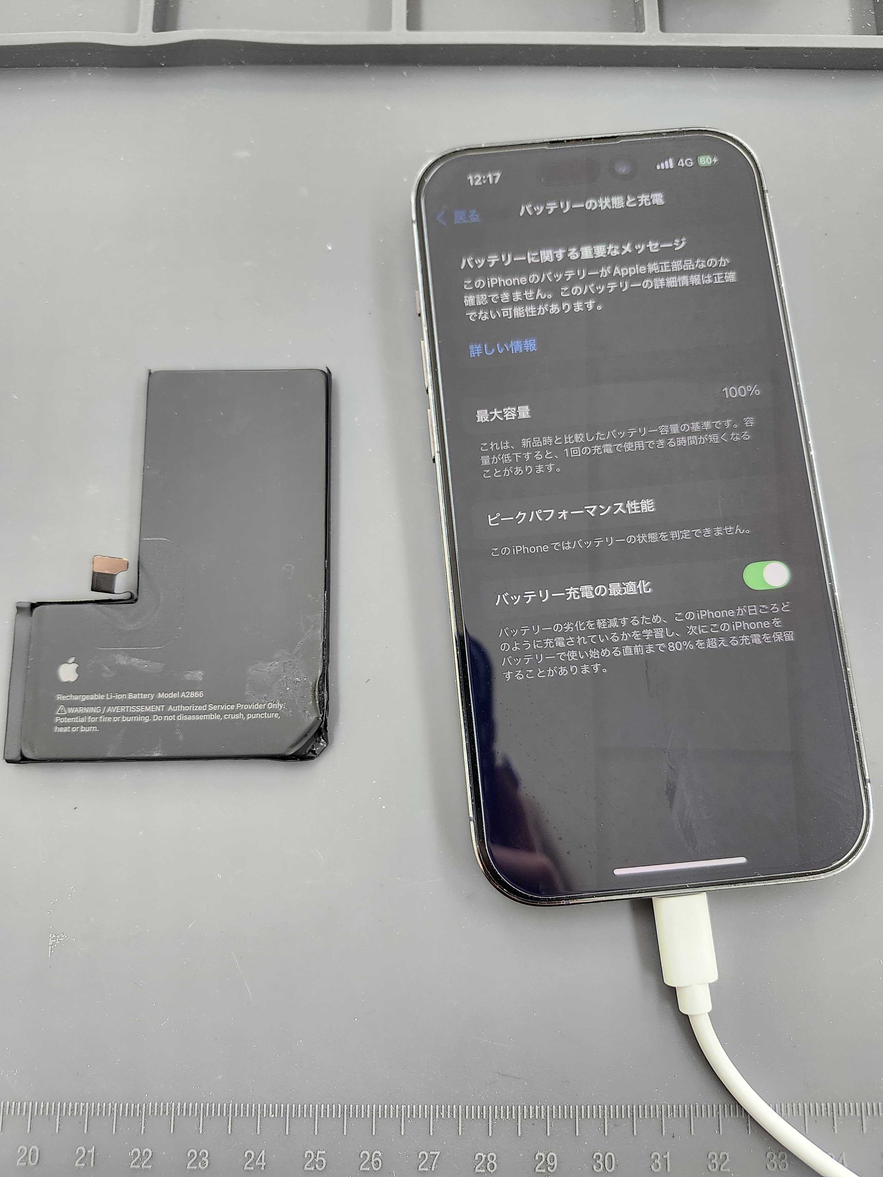 今回は、電池の減りが急激に早くなった iPhone14 Pro をお預かりし、