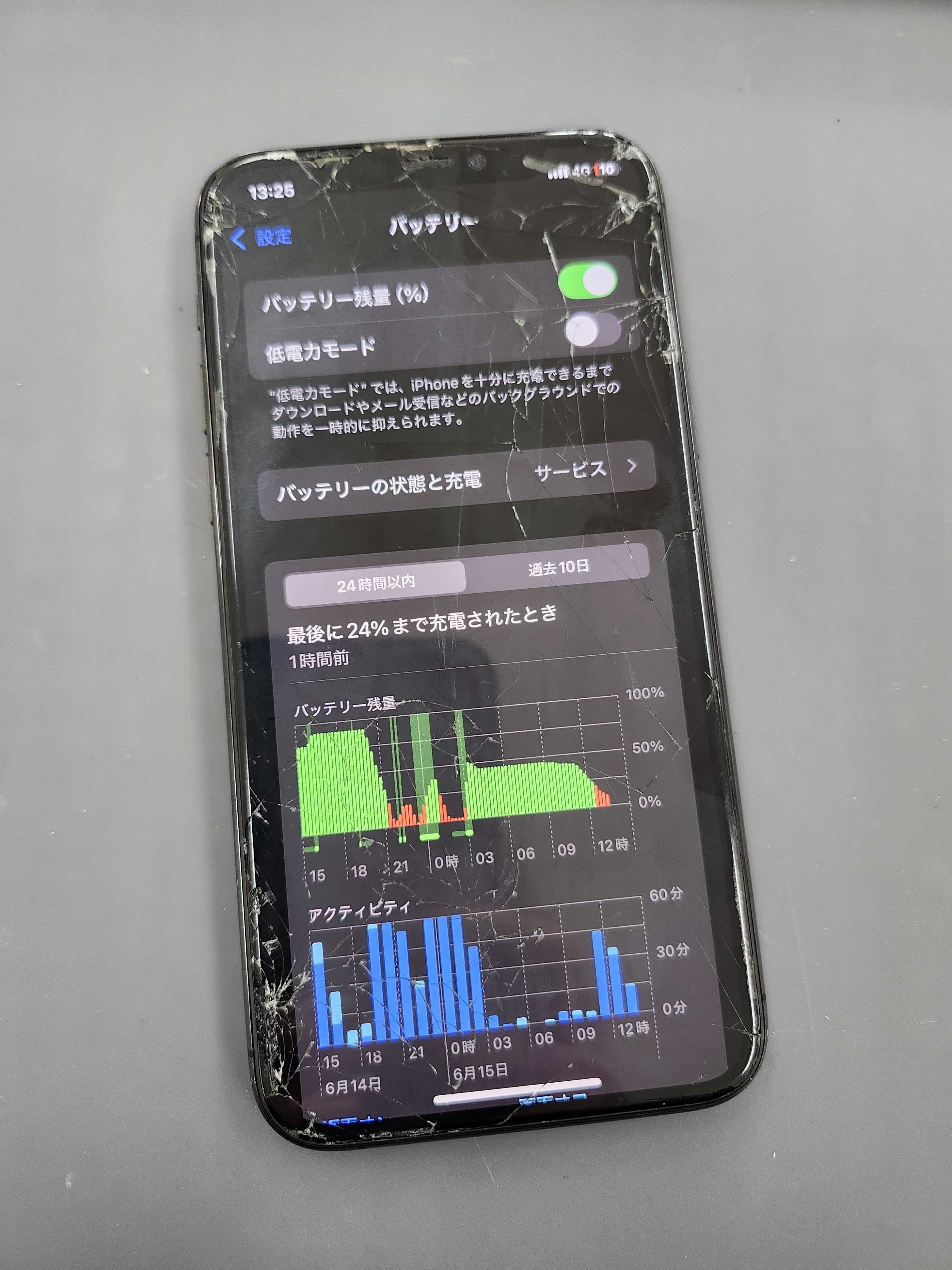 iPhoneを落としてしまい画面がバキバキになってしまったそうです!💦