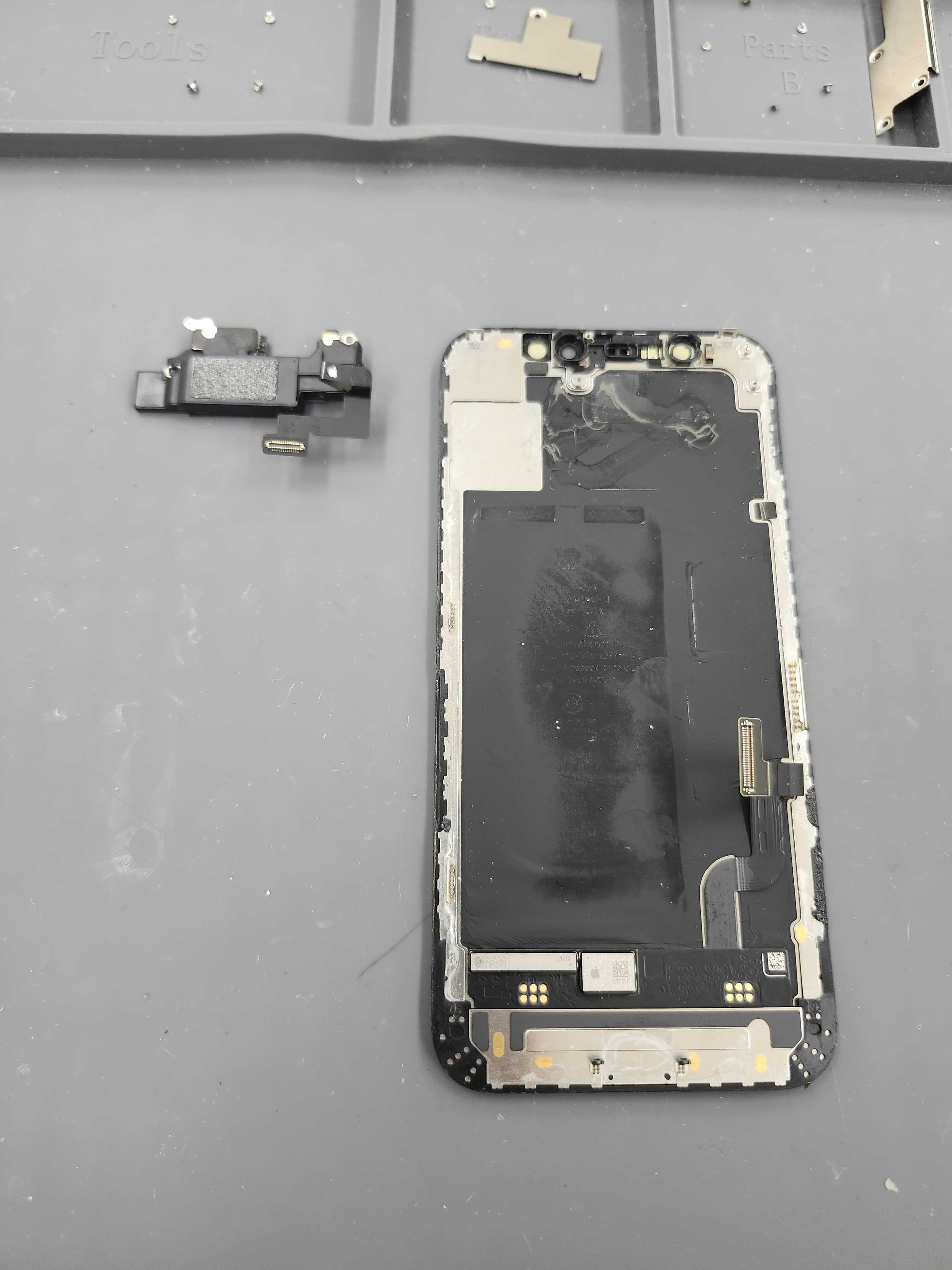 iPhone12シリーズでは、FaceIDのパーツは本体と紐付いているため、既存パーツを丁寧に移植します。