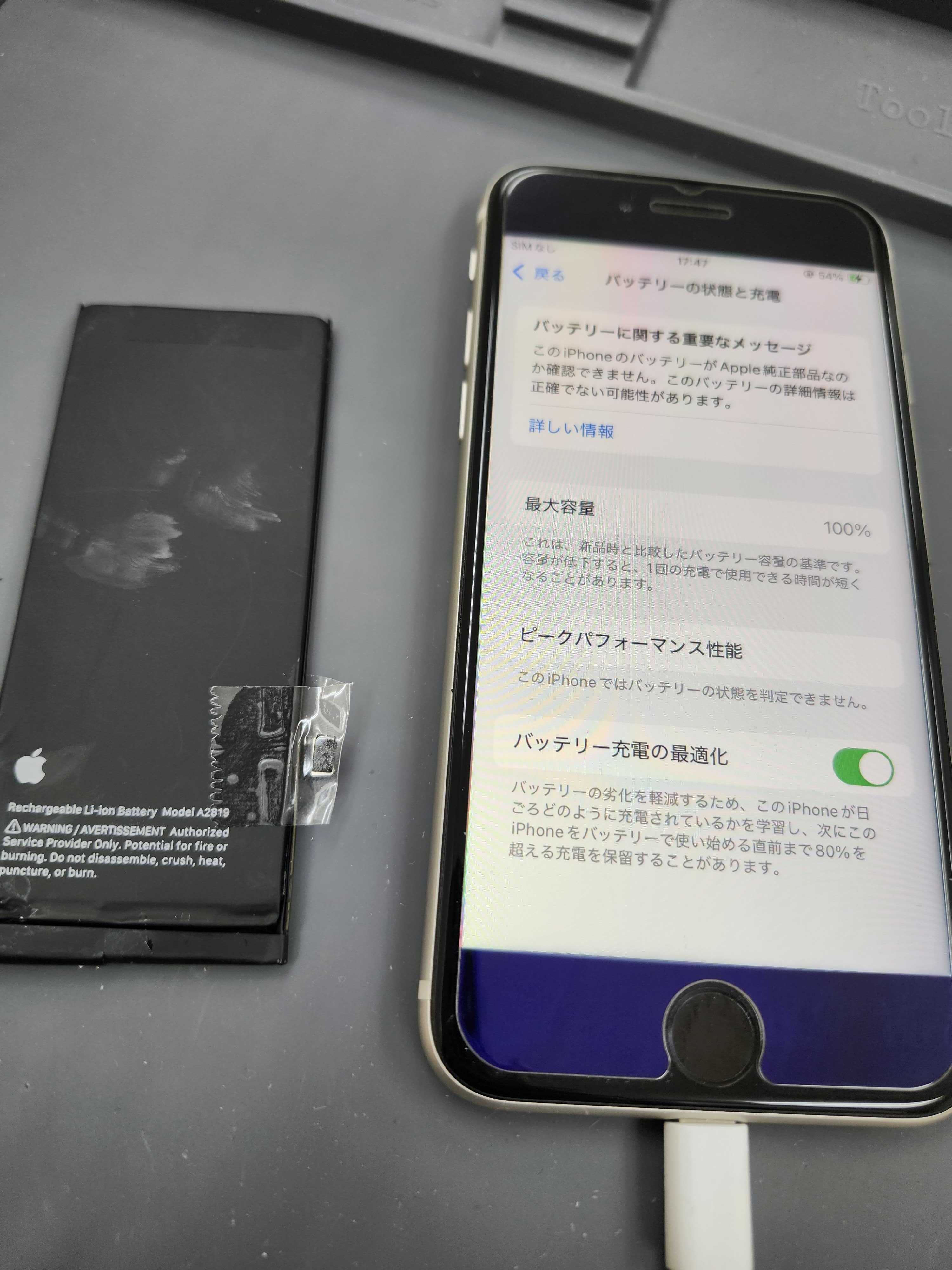 今回は iPhone SE(第3世代)のバッテリー交換 のご依頼でご来店いただきました。