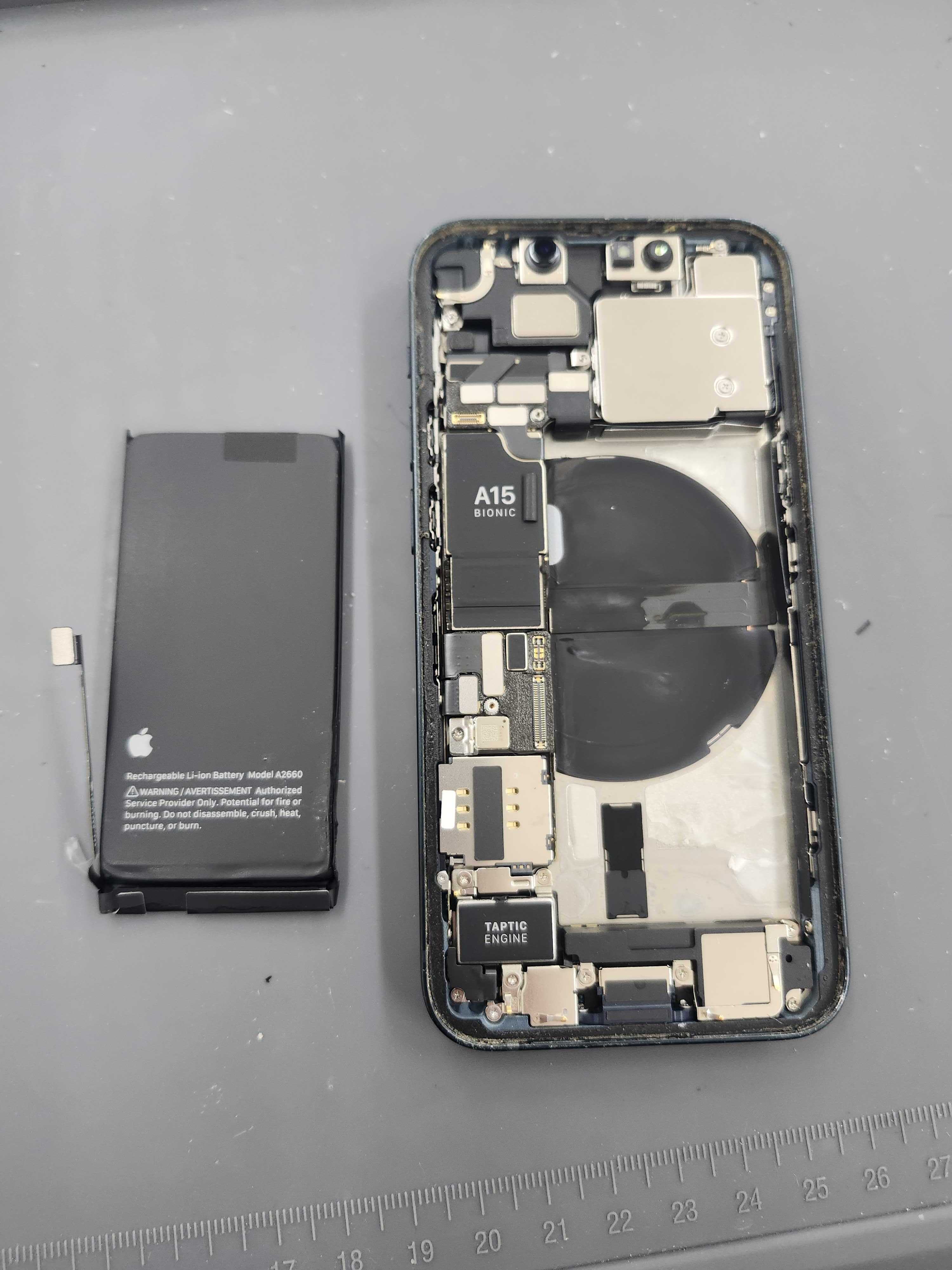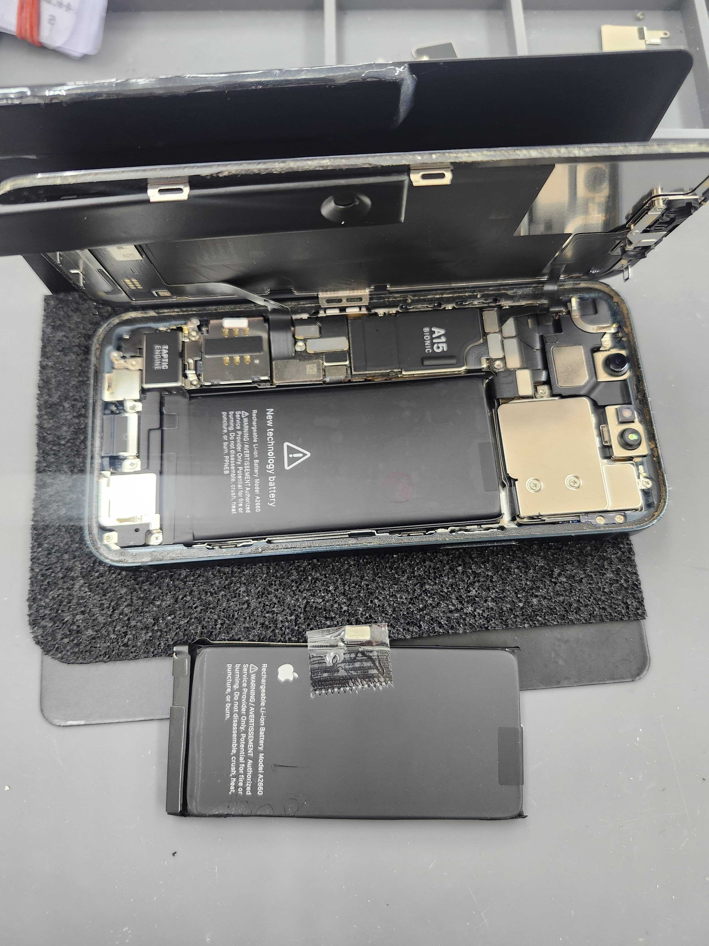 iPhone13シリーズは耐水テープが強力なため、開口作業には丁寧さが欠かせません。