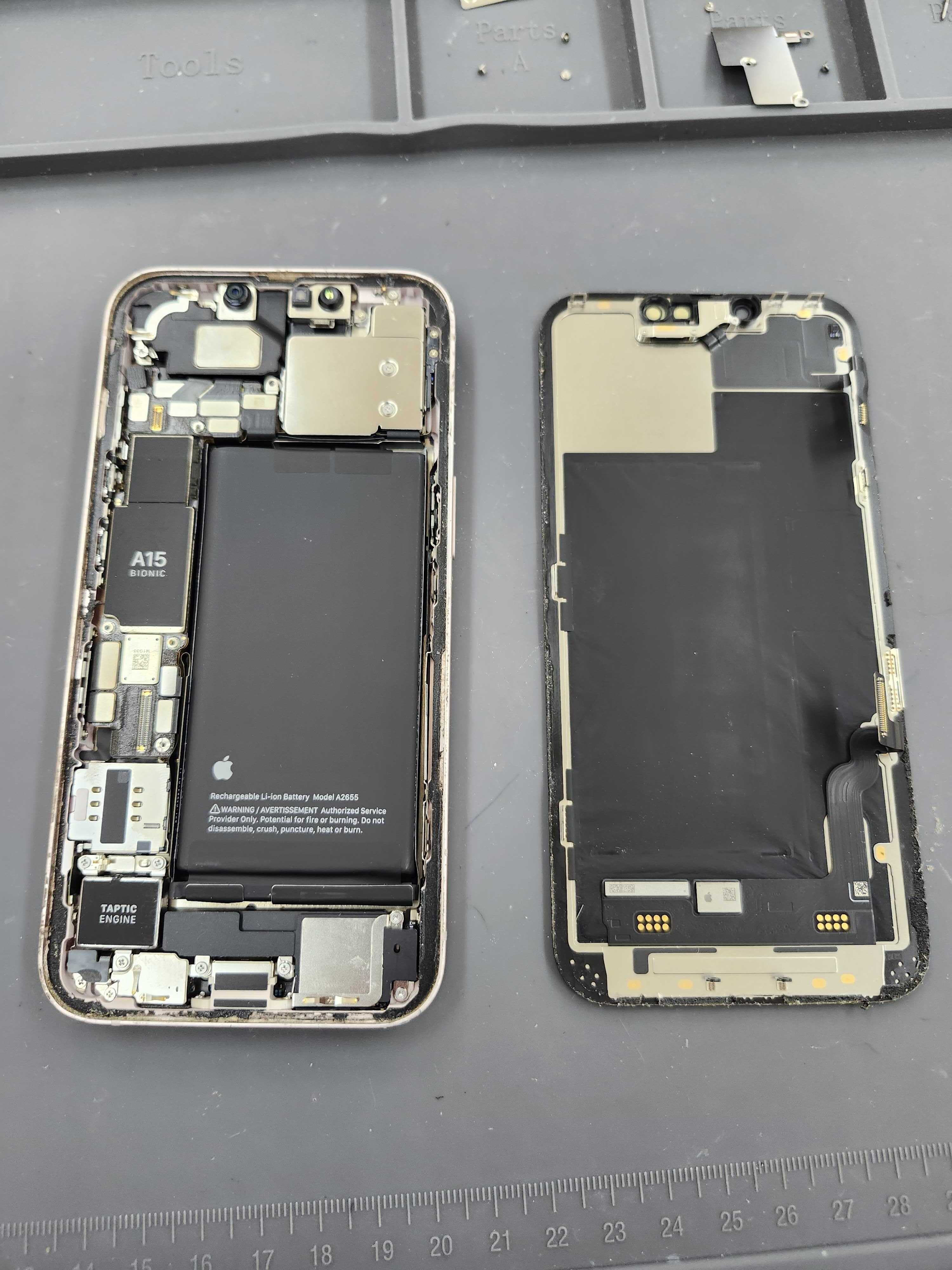 iPhone13は耐水シールが強力に貼られているため、適切に温めてから慎重に開いていきます。
