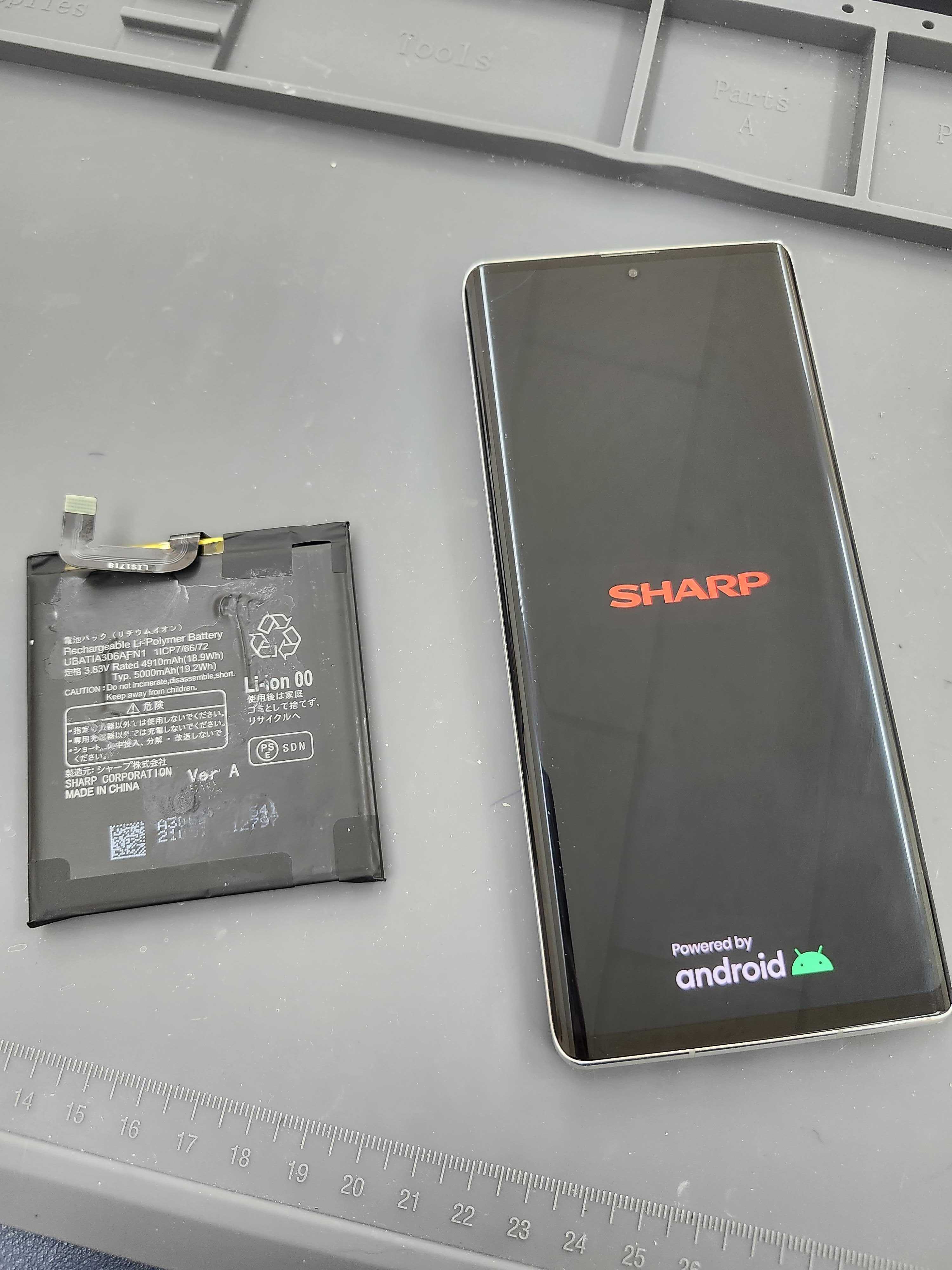 今回は、カメラ性能の高さで人気の AQUOS R6 のバッテリー交換をご依頼いただきました。