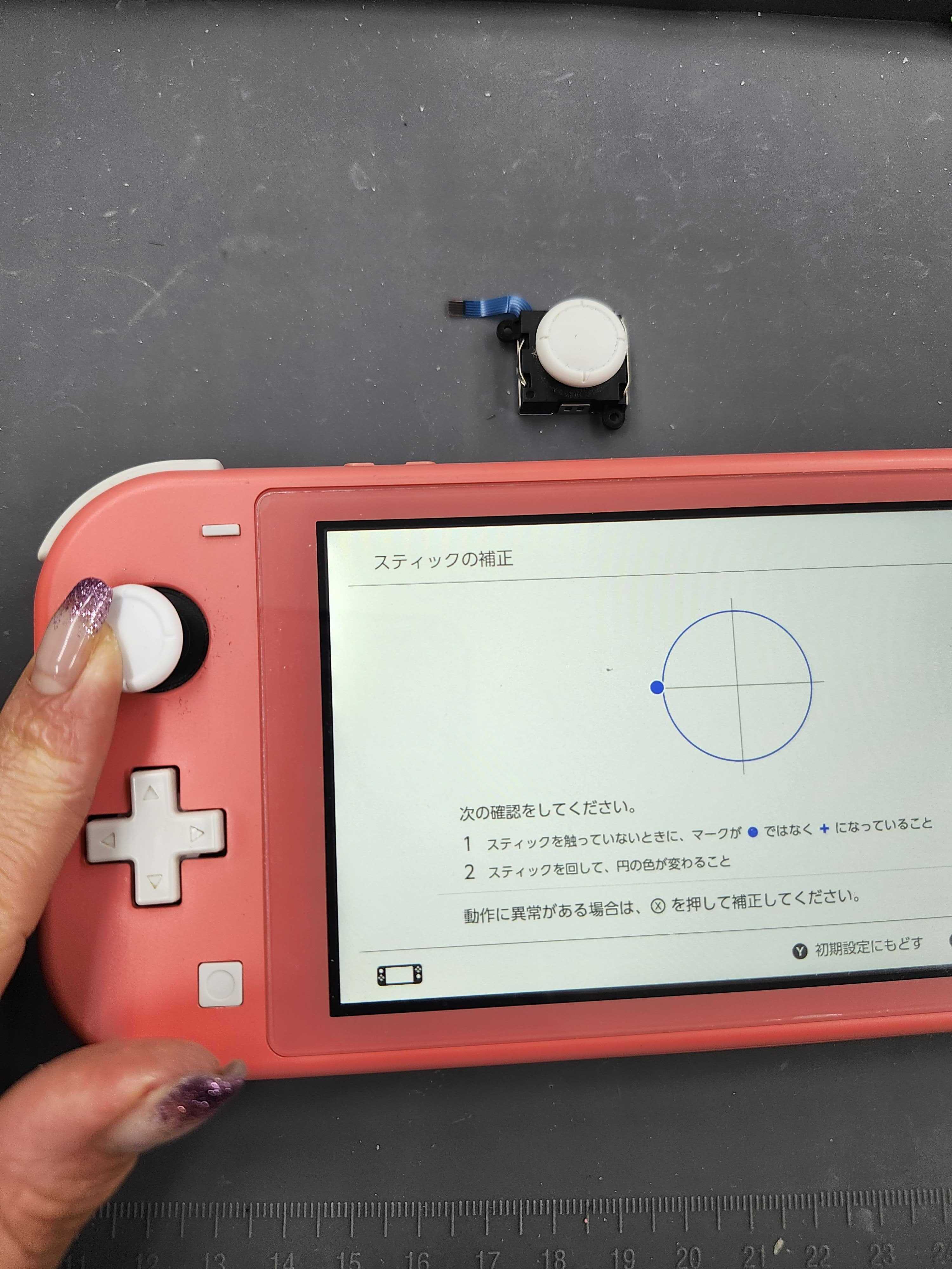 新品のスティックに交換して、再度補正画面で動作確認します。
