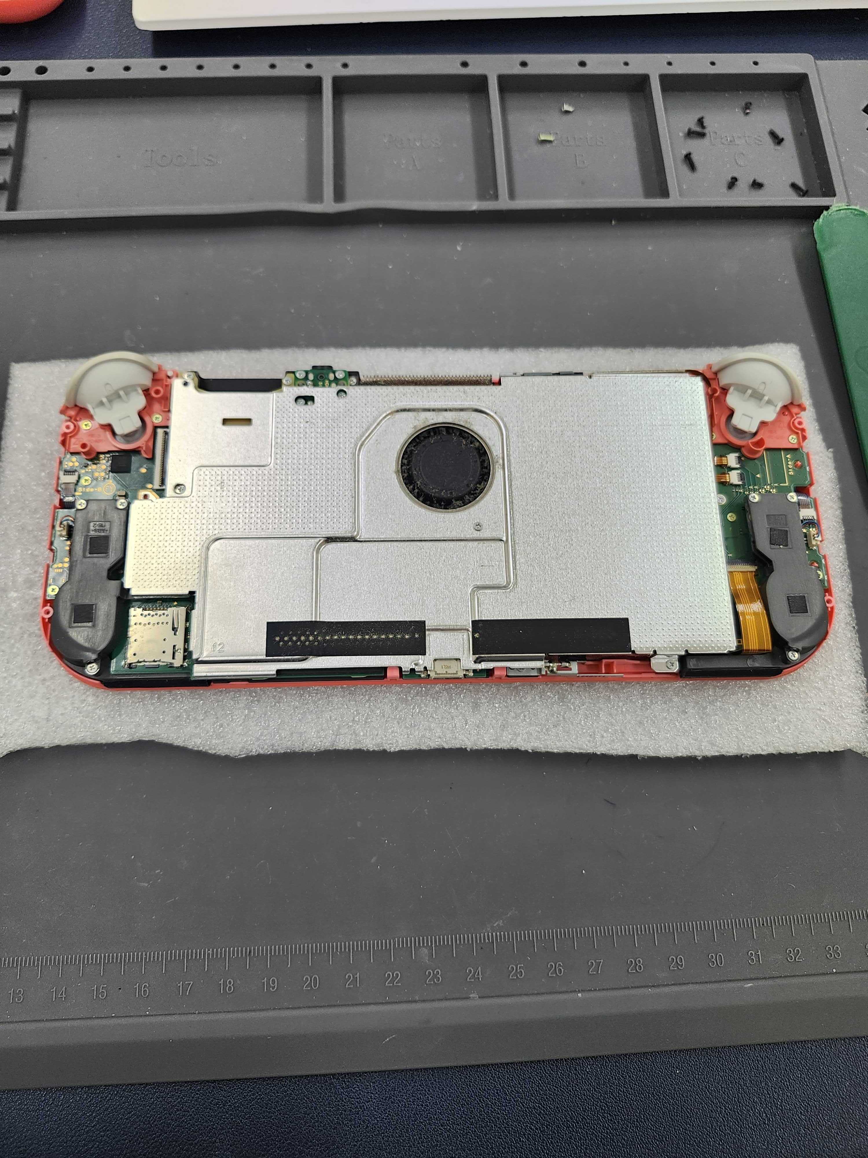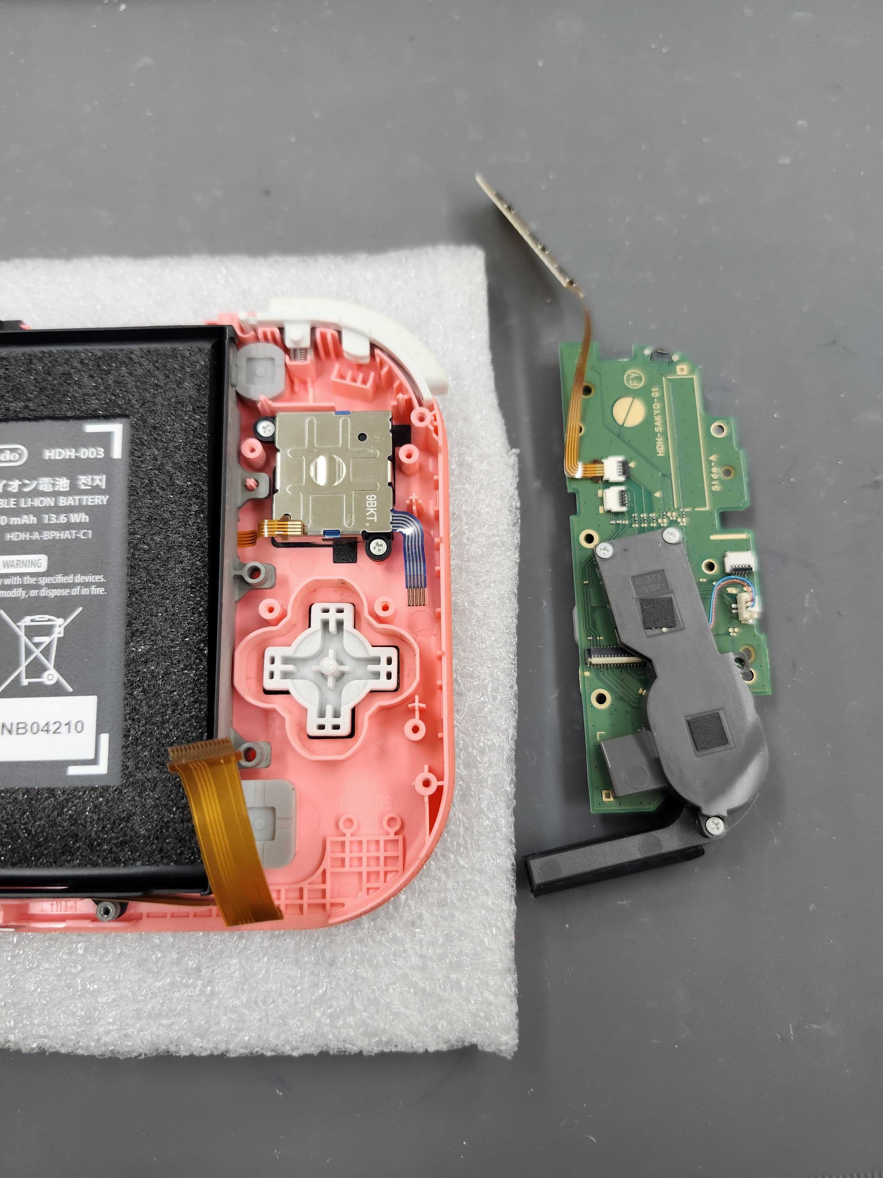 左スティックユニットは基板へケーブルで接続されているため、精密作業で交換していきます。