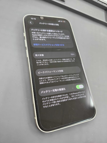 今回のように最大容量が78%まで低下している場合は、明らかに劣化が進んでいる状態です。