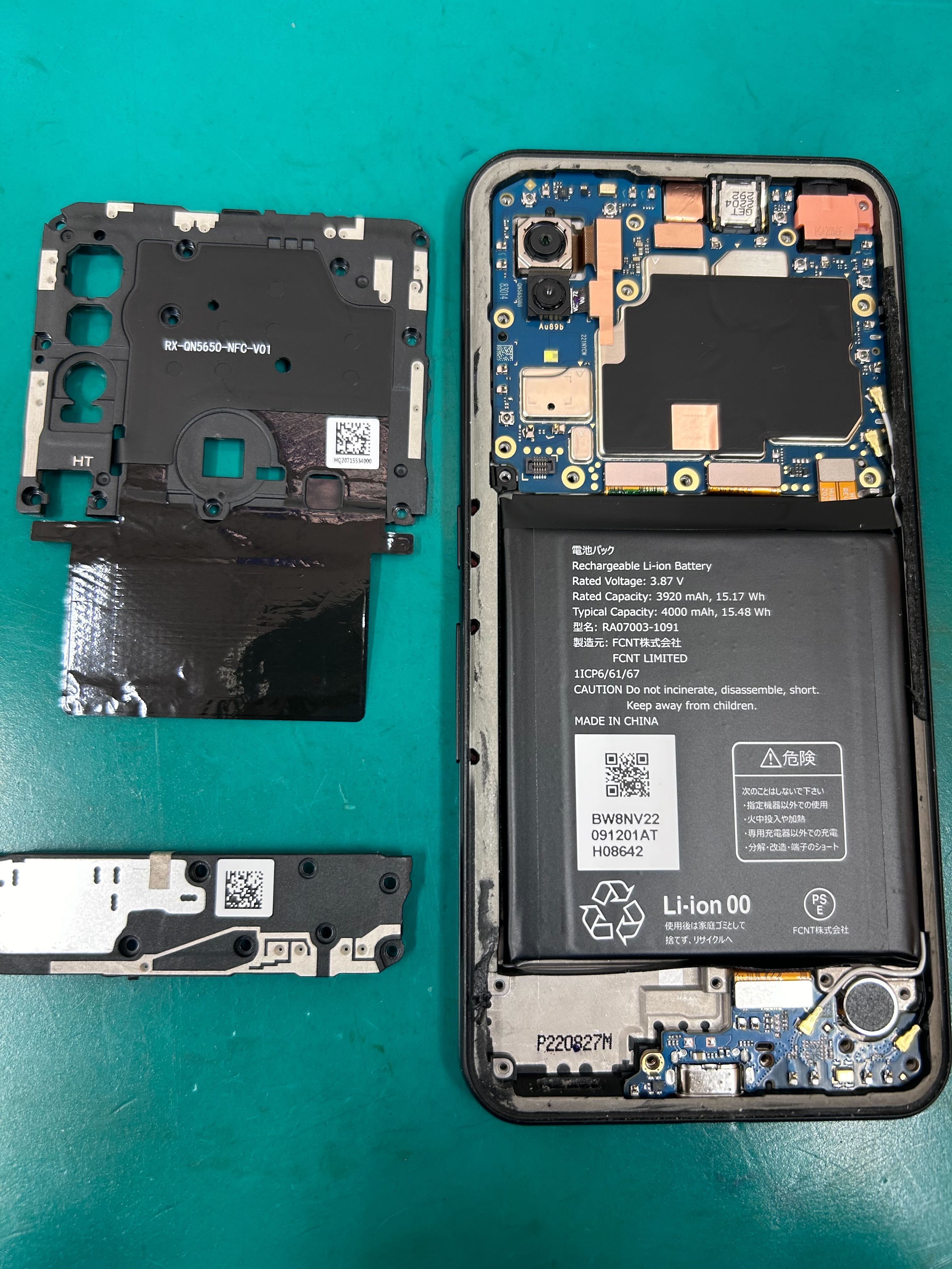 端末内部を確認したところ、充電口パーツに劣化と接触不良が見られました。