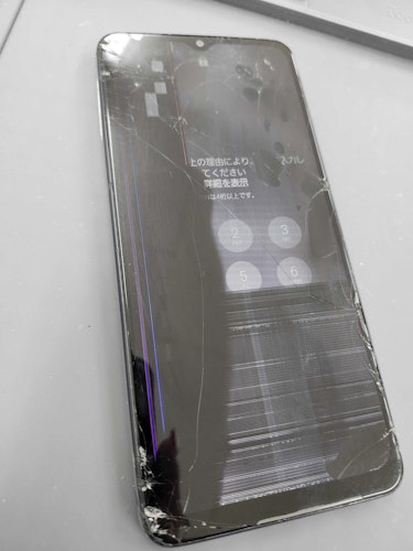 見た目の割れだけでなく、液晶表示にも明らかな異常が出ていました。