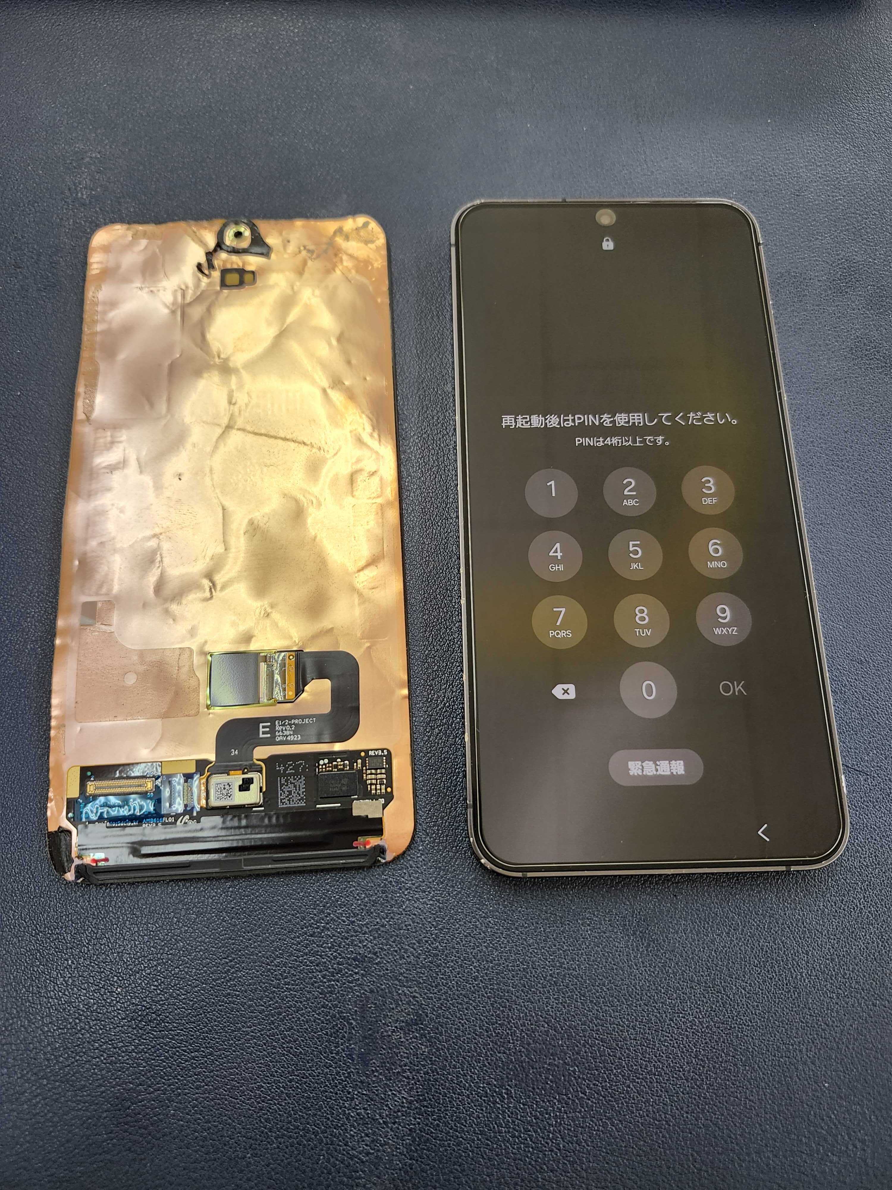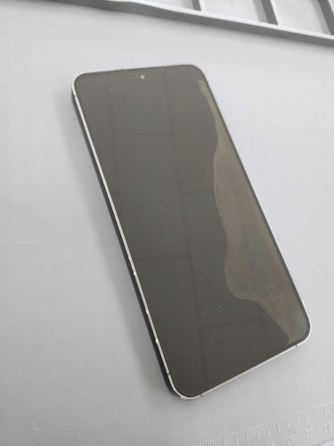 今回お持ち込みいただいたGalaxy S24は、画面の一部に黒いにじみのような症状が出ており、典型的な液晶漏れの状態でした。
