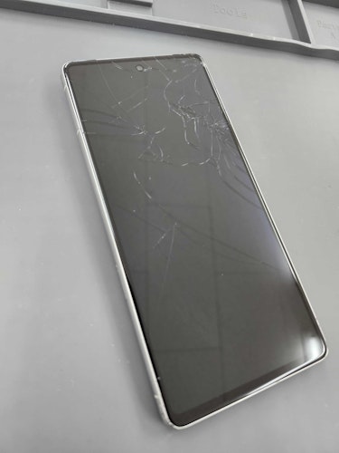 今回お持ち込みいただいた Google Pixel 7 は、落下の衝撃によって画面全体にヒビが入ってしまっている状態でした。