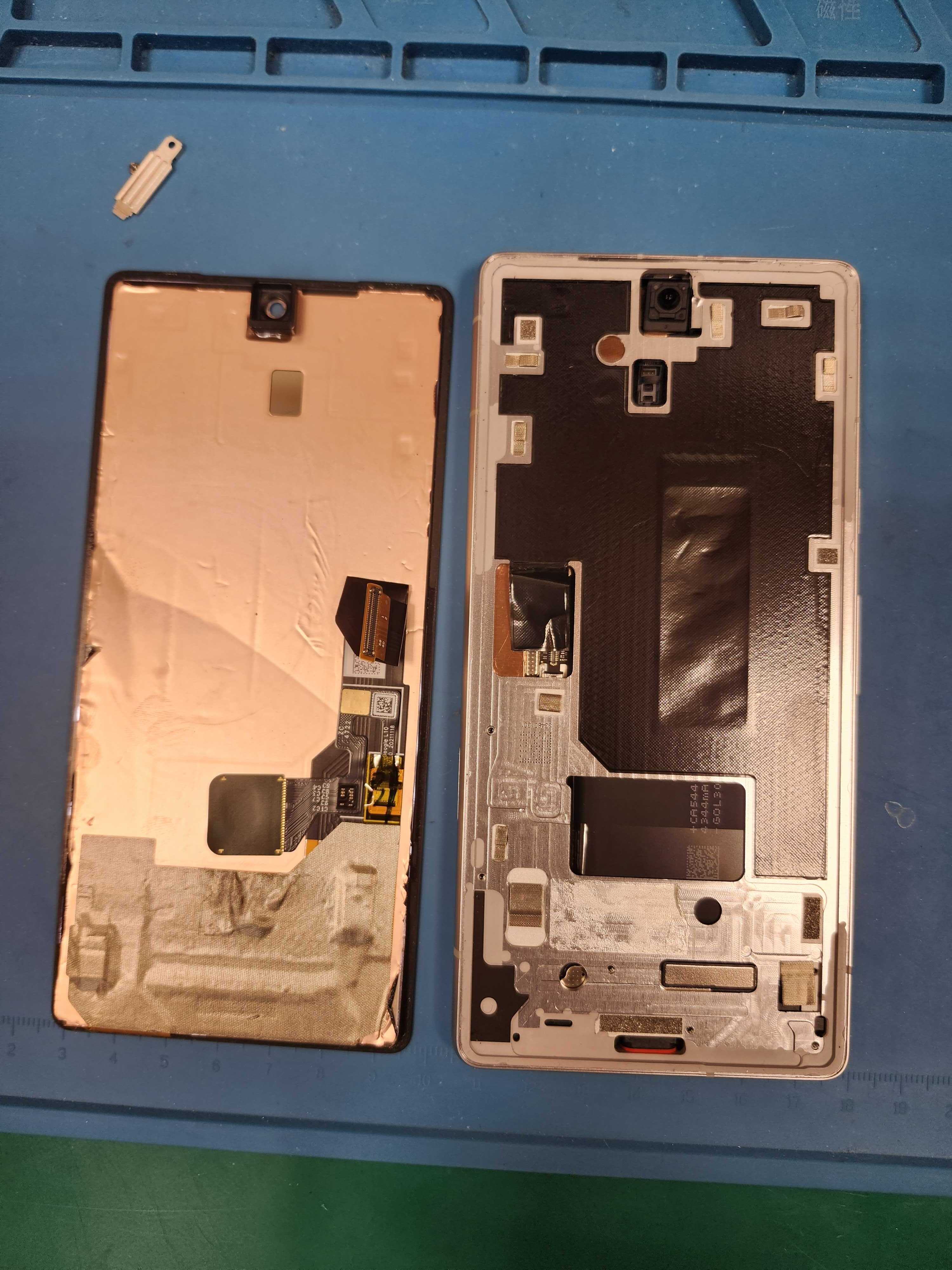 Pixel 7aは背面からではなく、フロントパネル側から開けていく構造です。