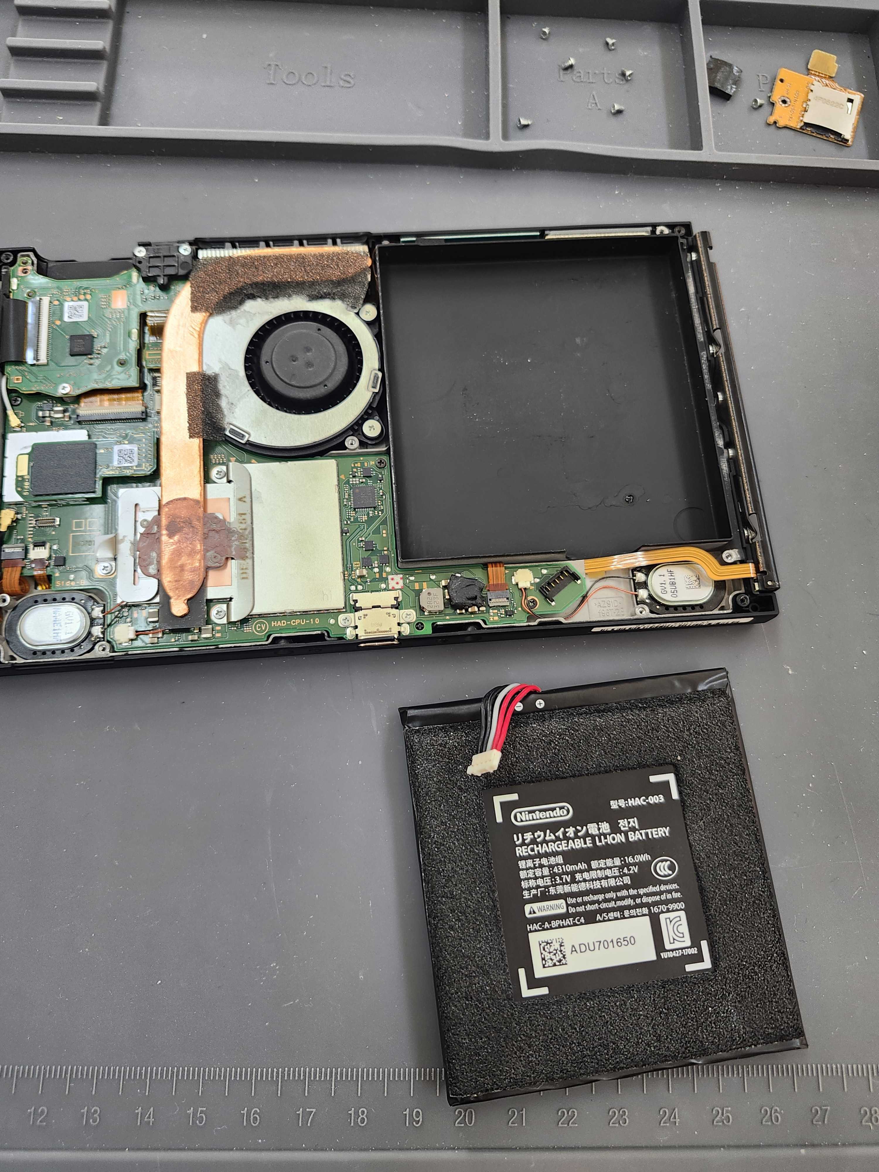 Switchのバッテリーは強力な両面テープで固定されているため、