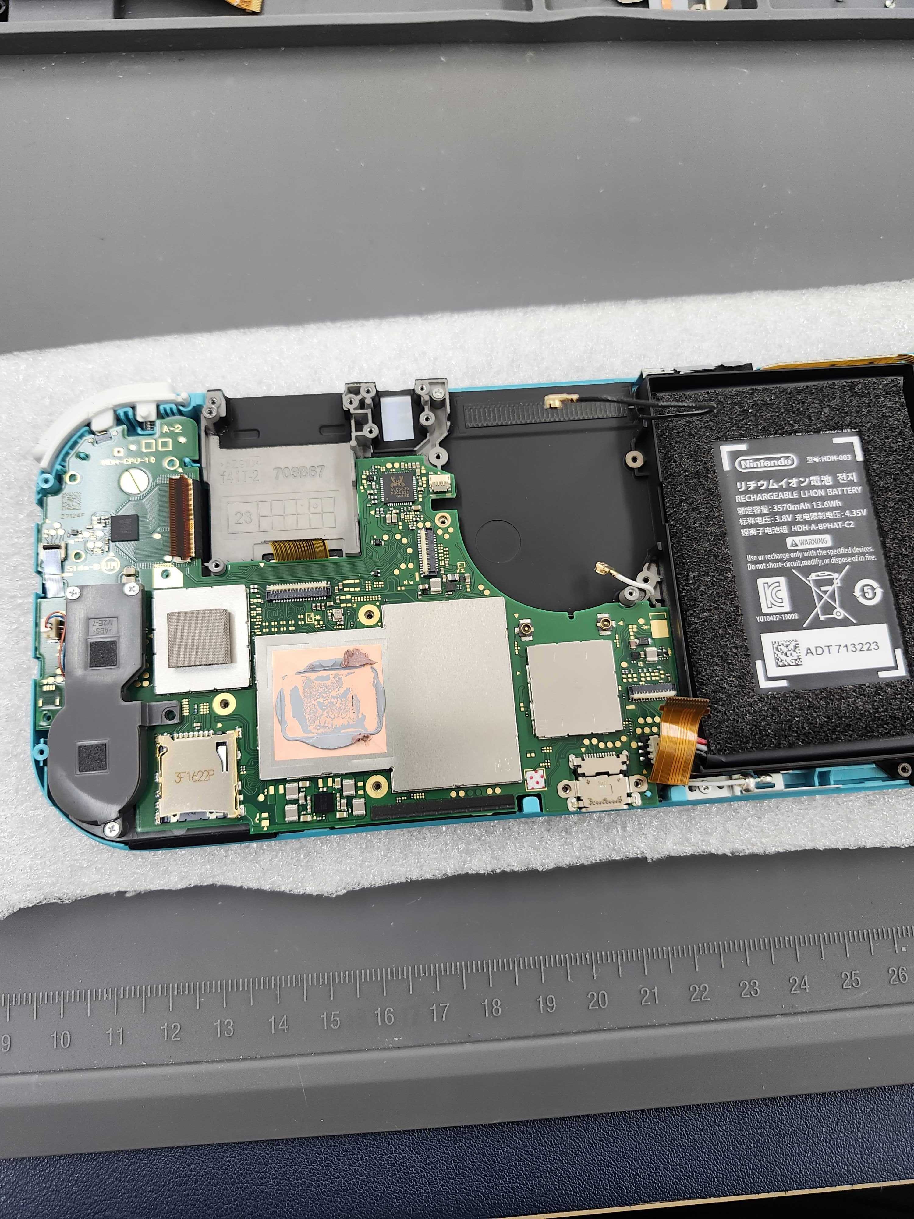 背面カバーを開け、バッテリーや基板を慎重に取り外していきます。