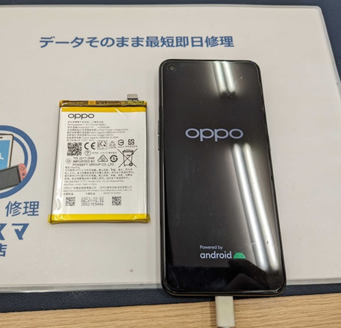 今回は、OPPO Reno5Aのバッテリー劣化による交換修理をご依頼いただきました!