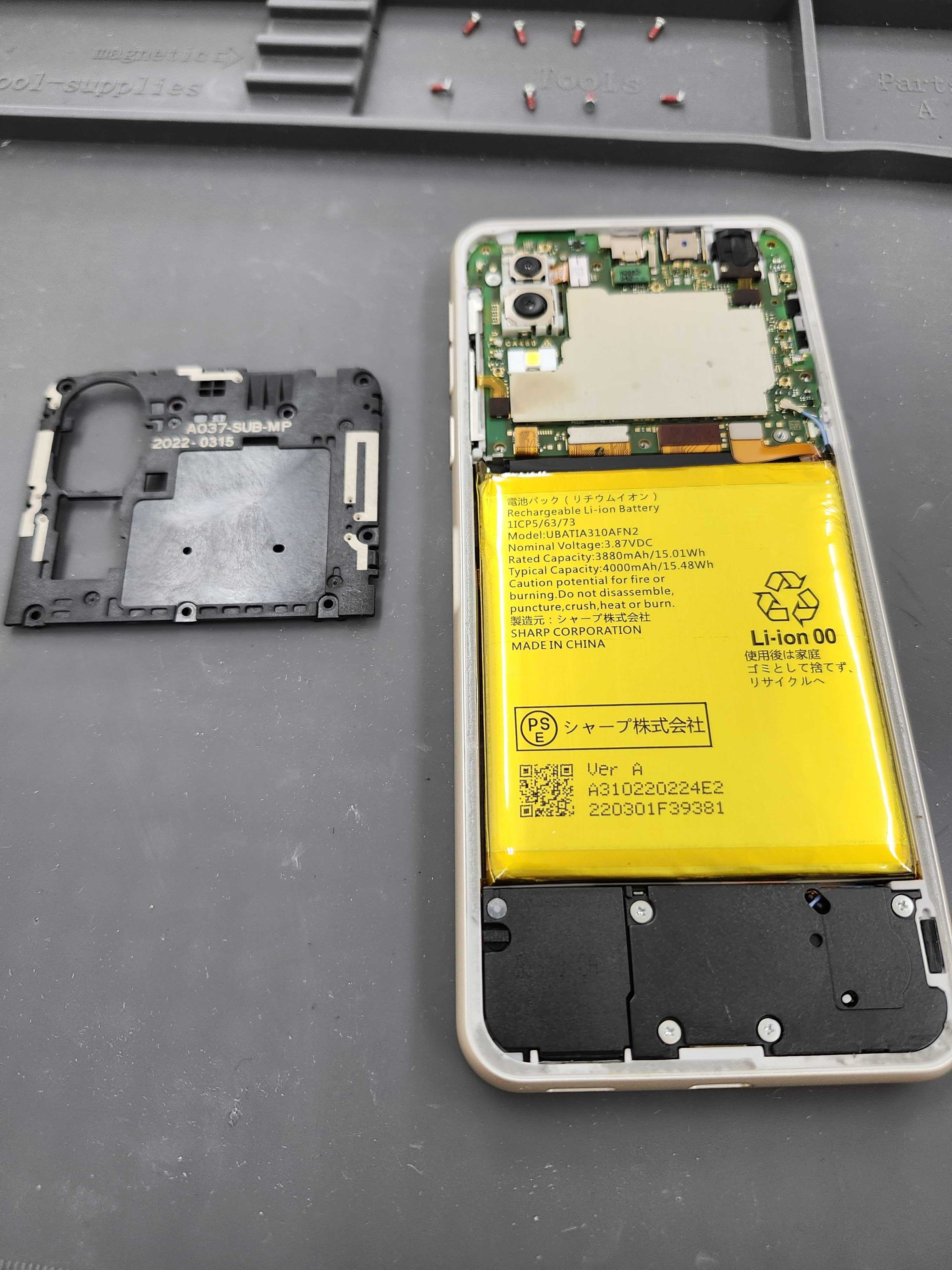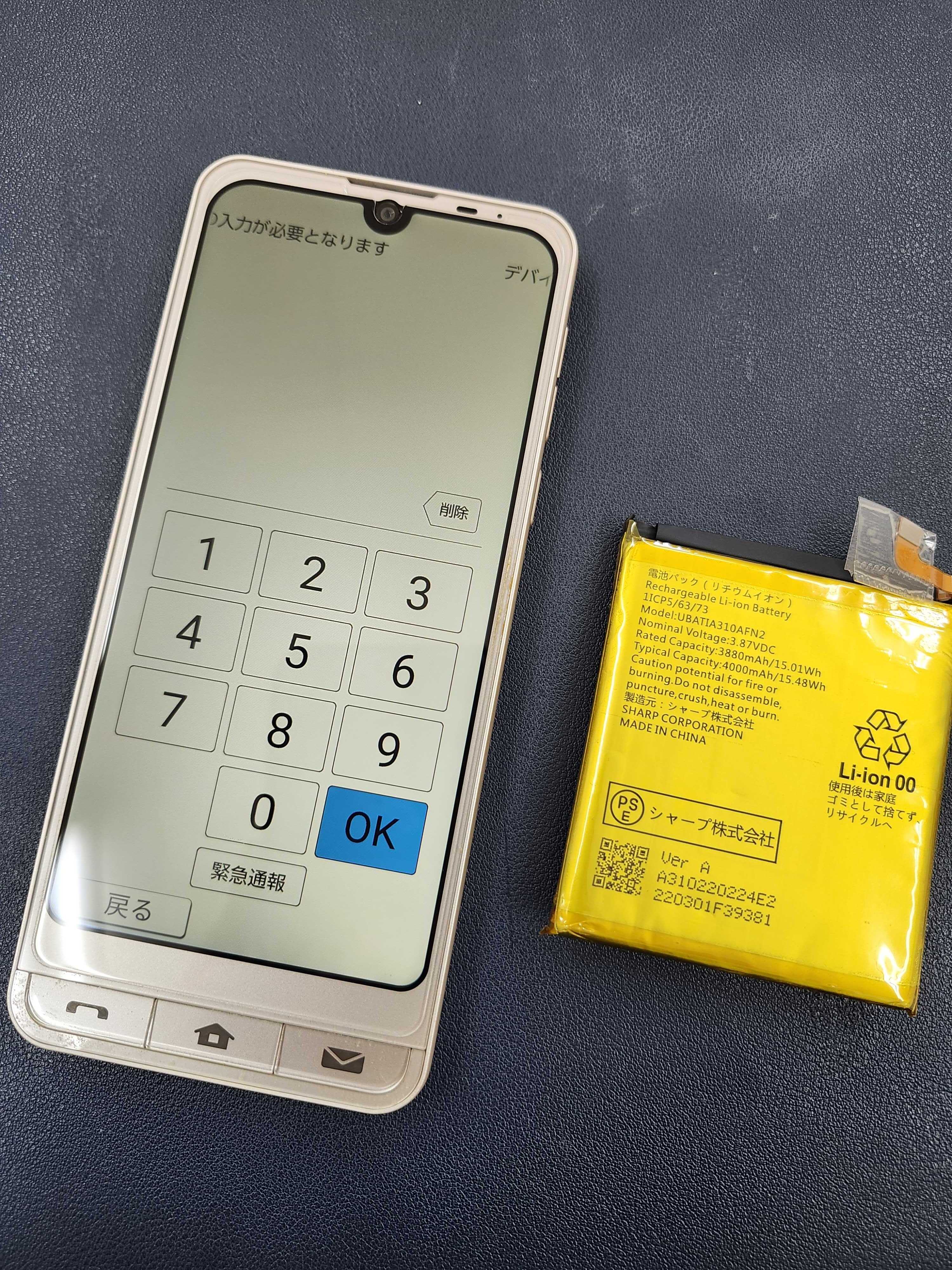 今回は かんたんスマホ6(AQUOS系)でバッテリーが膨張して背面が大きく浮き上がってしまった端末 の修理依頼をいただきました。
