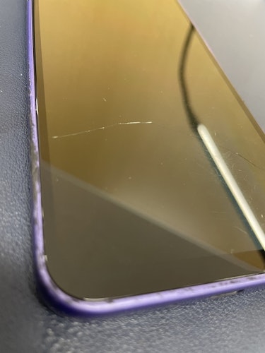 画面中央に横方向のヒビが入っており、一見軽度に見えますが、