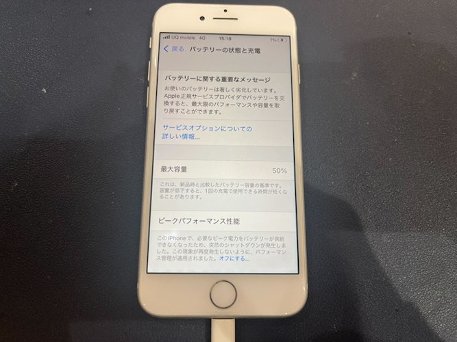 状態を確認してみると、バッテリーの最大容量は50%になっており、