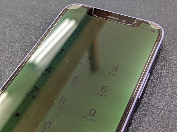 今回は、豊田市にお住まいのお客様よりご相談いただいた iPhone 12 の画面表示不良(全面が薄く緑色に光る症状) の修理実績をご紹介します。