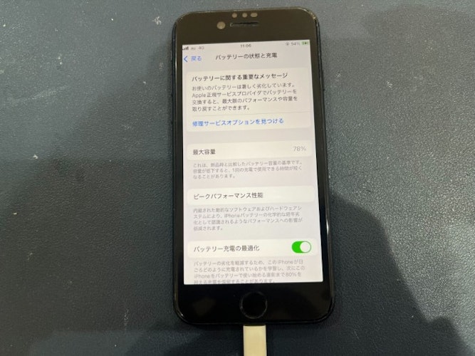 今回は、iPhone SE2(第2世代)のバッテリー最大容量が78%まで低下し、減りが異常に早い というご相談でご来店いただいたお客様の修理事例をご紹介します。
